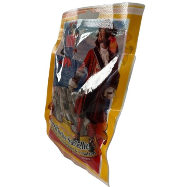 Verfügbar: 15 Stk.Pazifische Sardelle natur Natur Snack getrocknet, gesalzen. Das Produkt ist zum sofortigen Verzehr ohne zusätzliche Bearbeitung geeignet. Zutaten: Fisch (Stolephorus Spp.) 92 %, Salz, Feuchtigkeitsmittel: Sorbit, Geschmacksverstärker: E621. Fanggebiet: FAO57 Fangmethoden: Umschließungsnetze, Schleppnetze. Durchschnittliche Nährwertangaben pro 100 g: Brennwert: 1081 kJ / 255 kcal Fett: 2,11 g (davon gesättigte Fettsäuren: 1,15 g) Kohlenhydrate:0,1 g (davon Zucker: 0,1 g) Eiweiß: 58,39 g Salz: 7,15 g