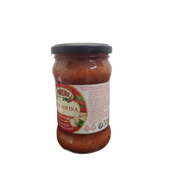 Zutaten: Tomaten 33 %, Wasser, Knoblauch 10 %, Meerrettich 7 %, scharfe Paprika 6 %, Tomatenmark 5 %, Branntweinessig, modifizierte Stärke, Salz, Säureregulator (Zitronensäure), Konservierungsstoffe: E202, E211.