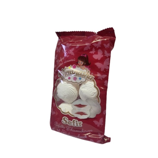 Zucker, Stärkesirup, kakaohaltige Fettglasur 36% (Zucker, Kakaobutterersatz Palmöl, Emulgatoren E492, E322), fettarmes Kakaopulver, Emulgatoren E322 (Sojalecithin),, Vanillearoma),Stärkesirup, Apfelpüree (passierte Äpfel, Konservierungsstoff – Schwefeldioxid 1%), Eiweißpulver, Geliermittel – Pektin, Säureregulatoren – Milchsäure, Natriumcitrat, Aroma – Vanille, Konservierungsstoff – Sorbinsäure.
